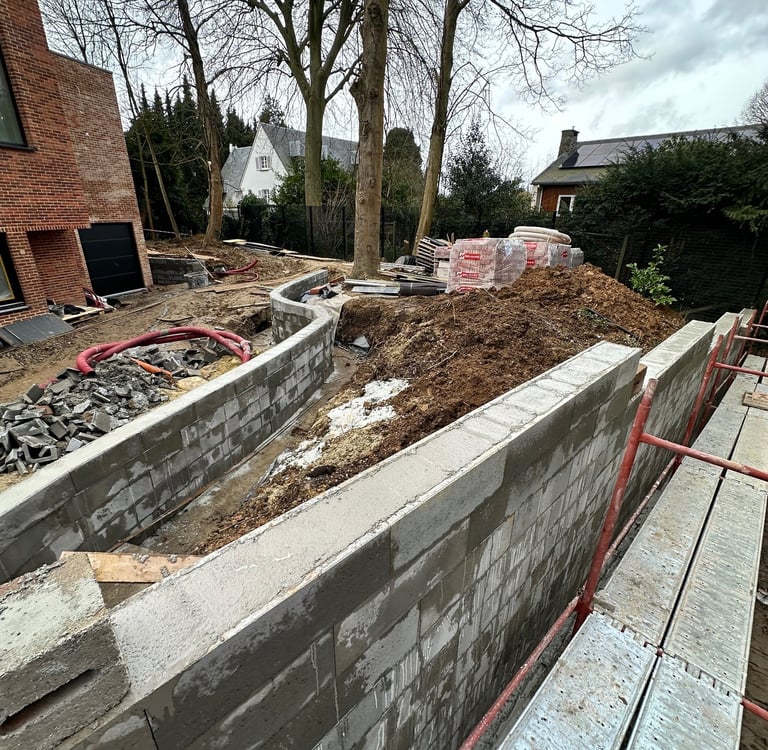 Découvrez notre mur de soutènement en bloc stepoc avec finition en briques de parement, alliant robustesse et esthétique.